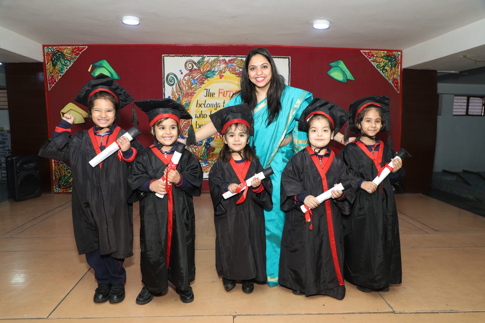 Kindergarten literally means ‘Garden for Children’. In today’s ever evolving environment, it is very important for children to get introduced to the latest technology for steady growth, learning and development. To encourage physical activities in tiny tots, we organise Concept Races, Beach Party, Colour Days etc. Children are exposed to Information and Communication at an early age. The activity room is designed to make learning more fun filled and exciting. Students love this room as it has many toys and educational games. The curriculum is well planned and is based on various themes which allows students to learn via a plethora of activities. They pay frequent visits to the dance room and playground to accelerate their growth and help them build greater confidence. They celebrate each festival with complete zeal and learn to pay respect to Indian values, customs and culture.